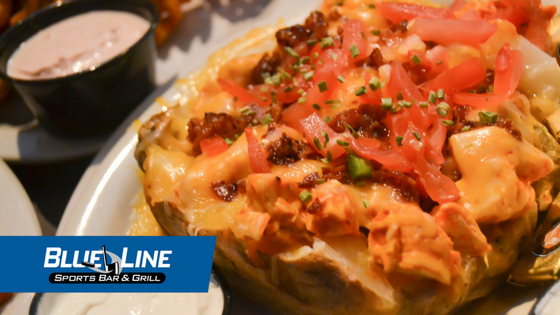 Wait, you’ve NEVER had a loaded baked potato? Are you kidding? They’re delicious! At Blue Line, we have the classic broccoli and cheese or chili cheese bakers, and also the savory chicken bacon ranch or buffalo chicken bakers. These delicious and satisfying potatoes are served with butter and sour cream on the side. Enjoy!